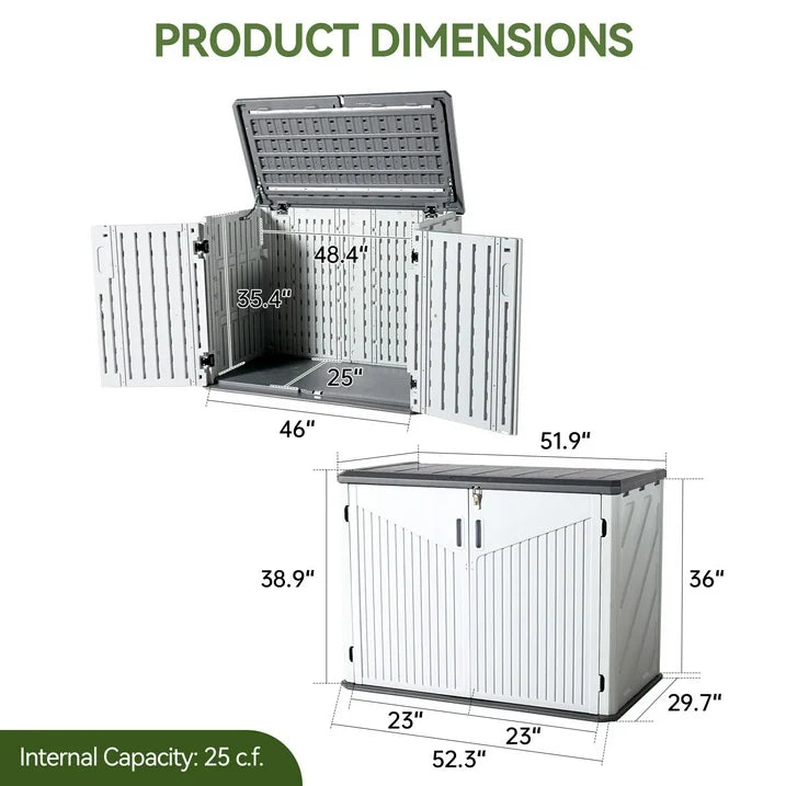 Aoxun 52inch Outdoor Storage Cabinet, Patio Waterproof Trash Can, Outdoor Horizontal Storage Shed for Garbage Bin, Generator, and Lawn Mower (White)
