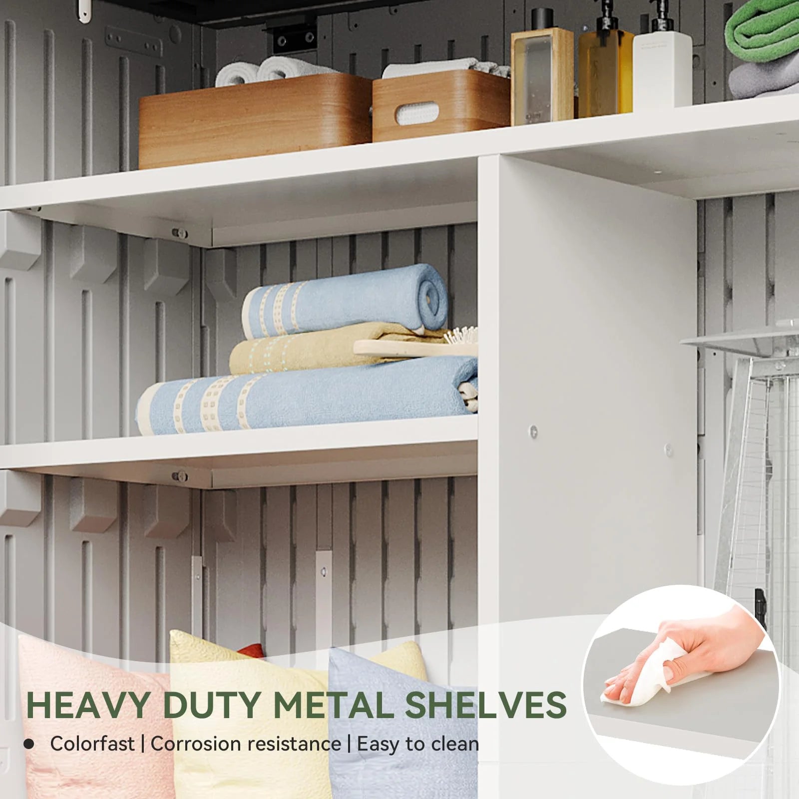 Aoxun Outdoor Resin Storage Shed with Metal Shelving Kit & Floor, 64 Cu.Ft Vertical Waterproof Storage Cabinet for Garage Storage, Pool Storage, Bike Shed, Garden Tools, Patio Furniture (White)