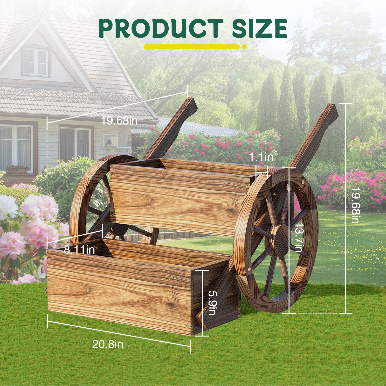 Good Material: Our wishing well flowerpots is made of high-quality fir, after being stamped and carbonized, it is strong and durable, and can be used outdoors and indoors