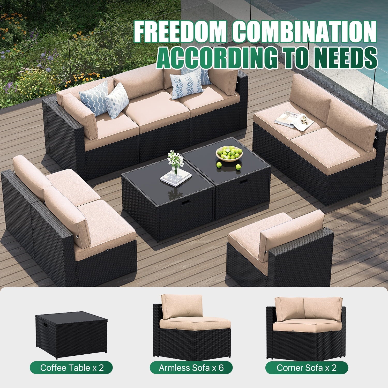 - ✔ Modular Flexibility:Customize the 10-piece sectional for intimate conversations or spacious entertaining. Easy assembly with numbered parts and 24/7 customer support.