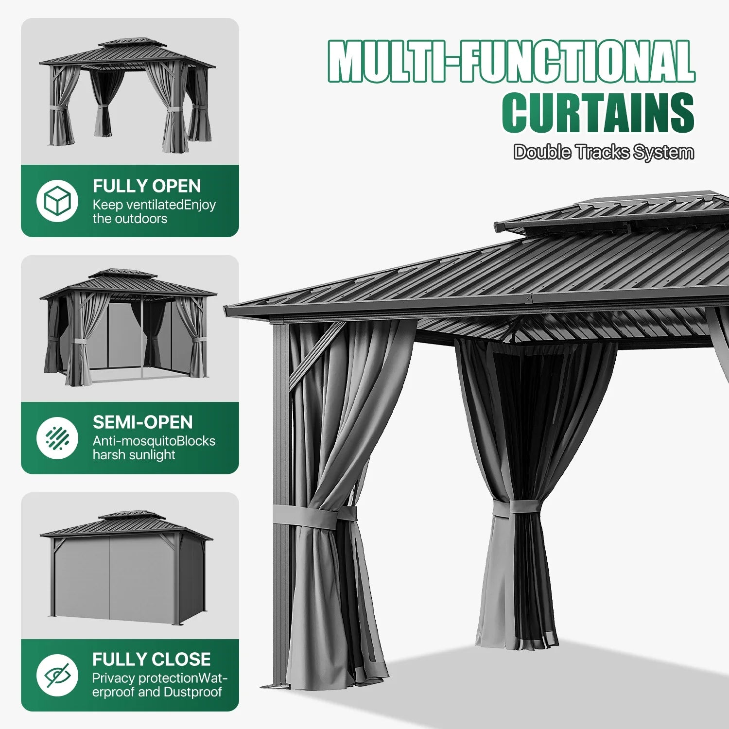 Clouddwell 10' x 12' Gazebo for Patio, Gazebo Pergola with Sloped Roof, Large Wall-Mounted Heavy Duty Awnings, for Deck, Patio and Backyard