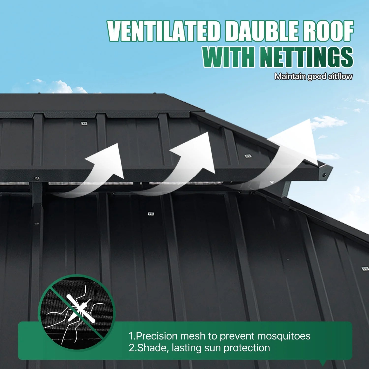 - Sloped Roof and Stylish Design: The angled roof not only adds a modern aesthetic but also ensures efficient water drainage, preventing rainwater accumulation.Featuring a contemporary and unique sloped roof design, this pergola enhances the visual appeal of any outdoor space, garden or yard