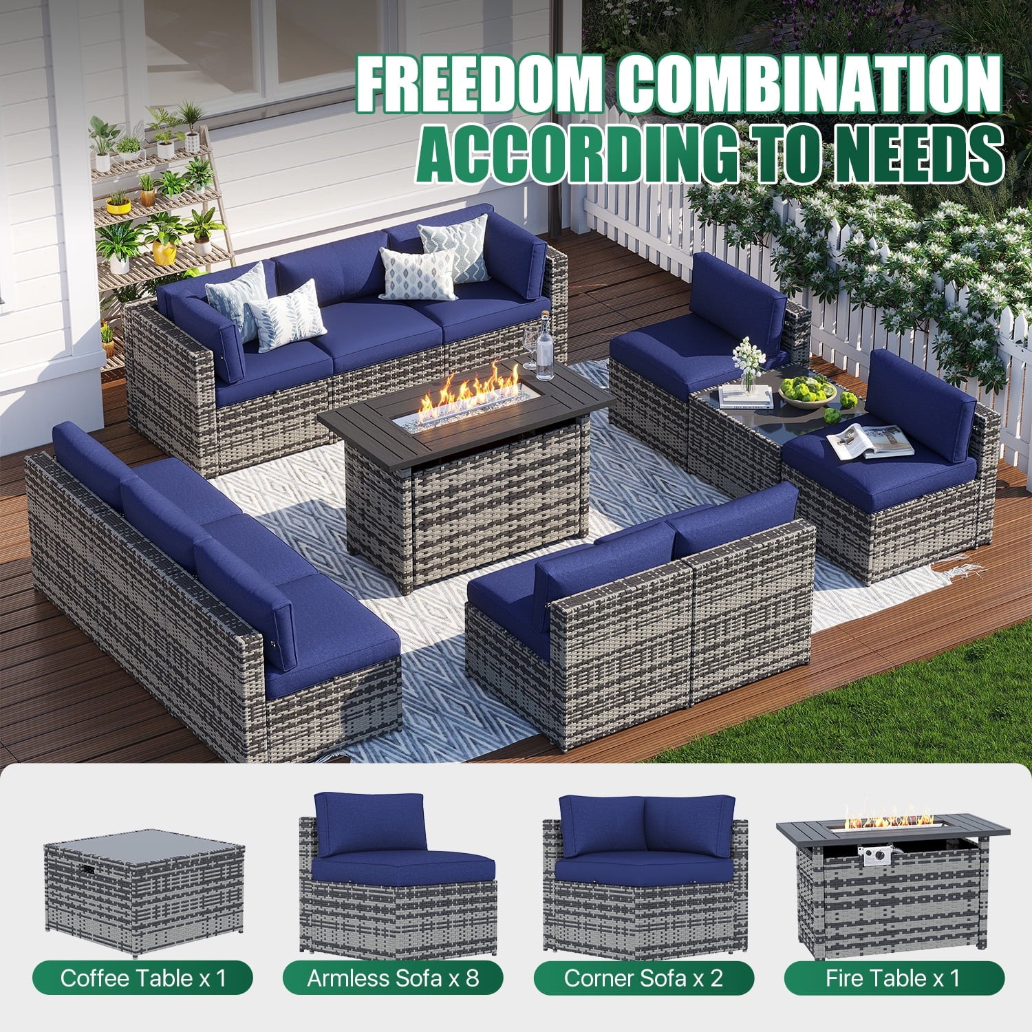 - Versatile and Comfortable: Our 12-piece patio set includes 8 armless sofas, 2 corner sofas,a firepit table and a coffee table, making it perfect for various outdoor spaces like patios, porches, backyards, balconies, poolside areas, and gardens. The plush cushions, filled with high-quality sponge or cotton, ensure superior comfort for an exceptional lounging experience