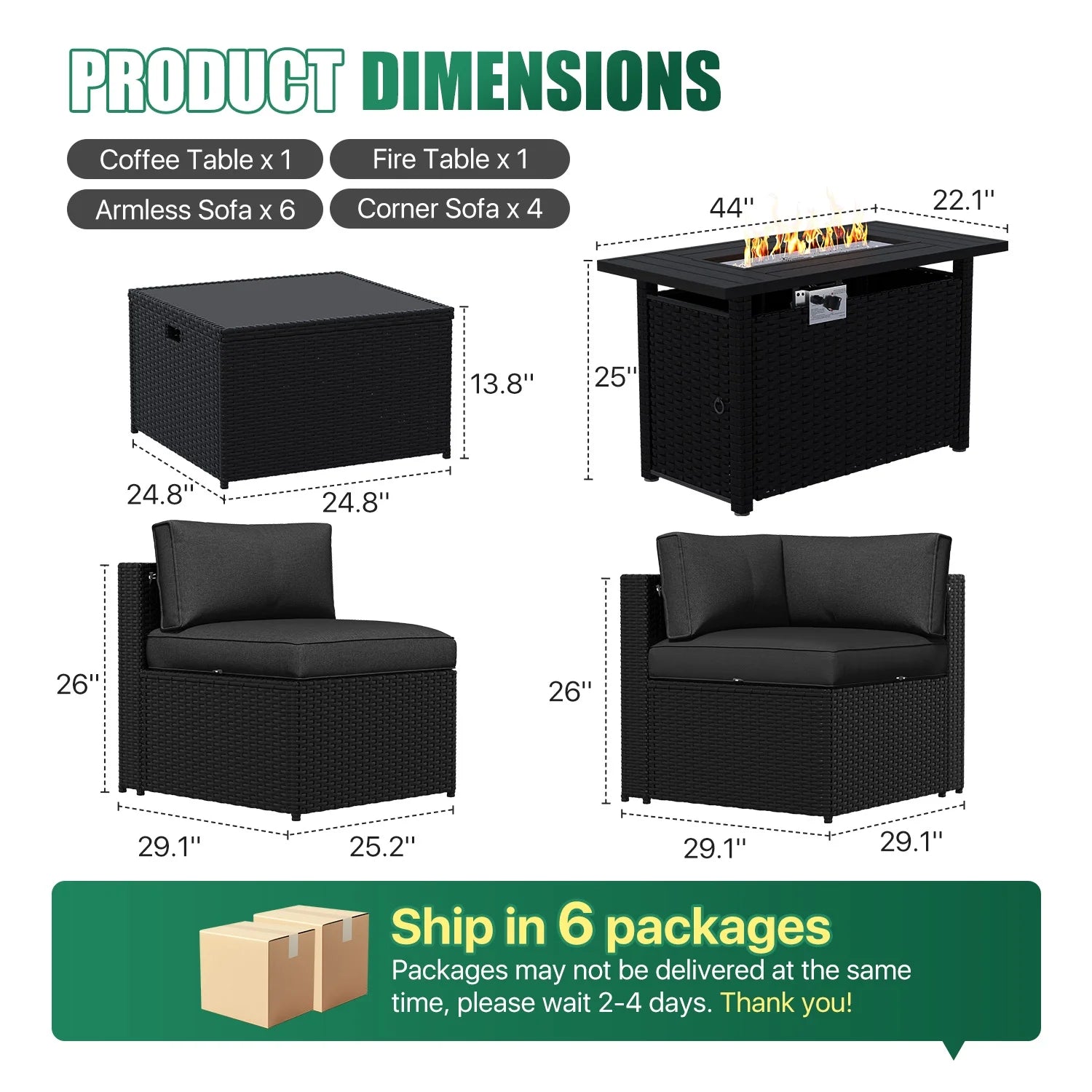 Clouddwell 12-Piece Patio Furniture Set With Fire Table On Sale, Black Rattan Wicker Outdoor Sectional Sofa Couch with Table Patio Conversation Set for Lawn& Backyard,Black