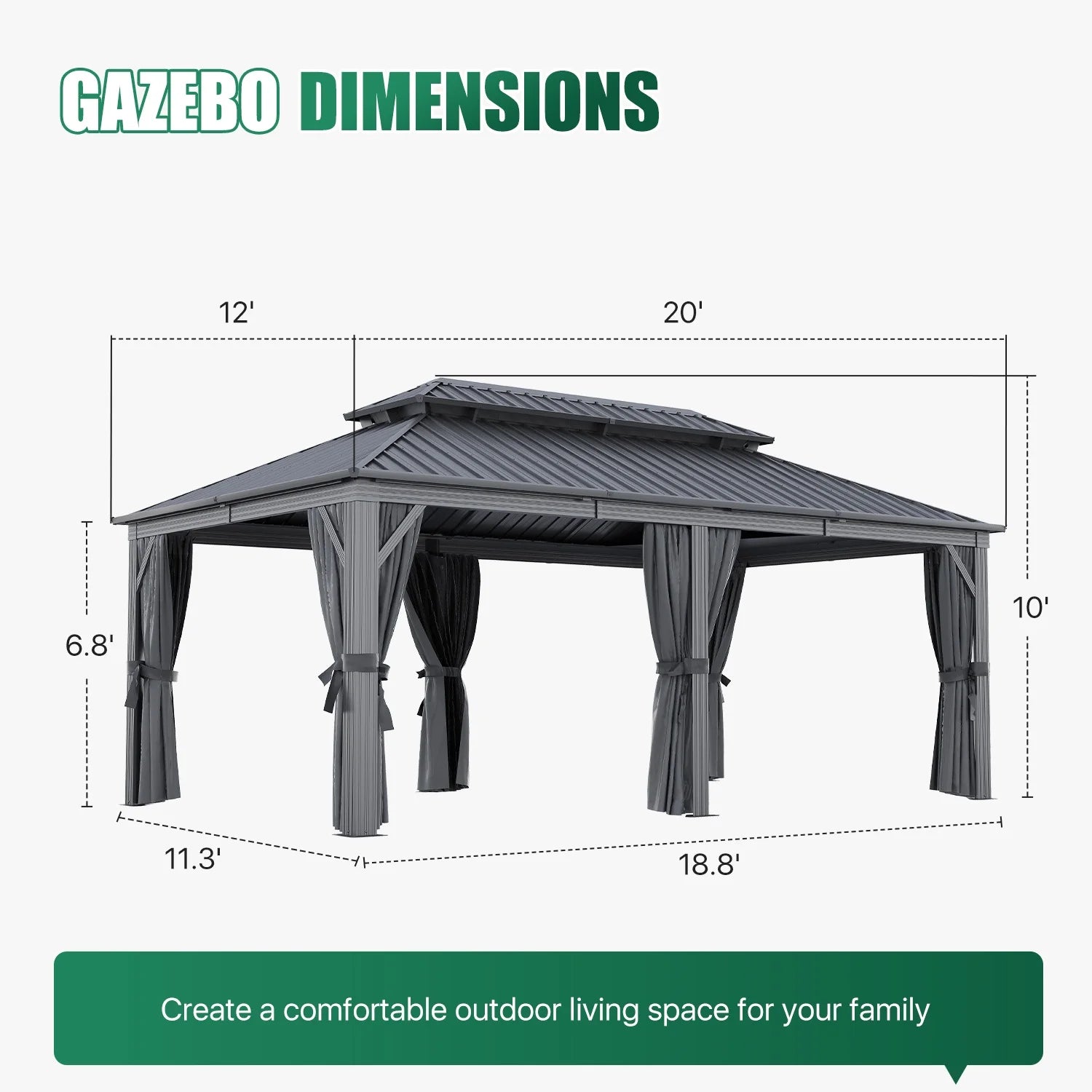 Clouddwell 12' x 20' Gazebo for Patio, Gazebo Pergola with Sloped Roof, Large Wall-Mounted Heavy Duty Awnings, for Deck, Patio and Backyard