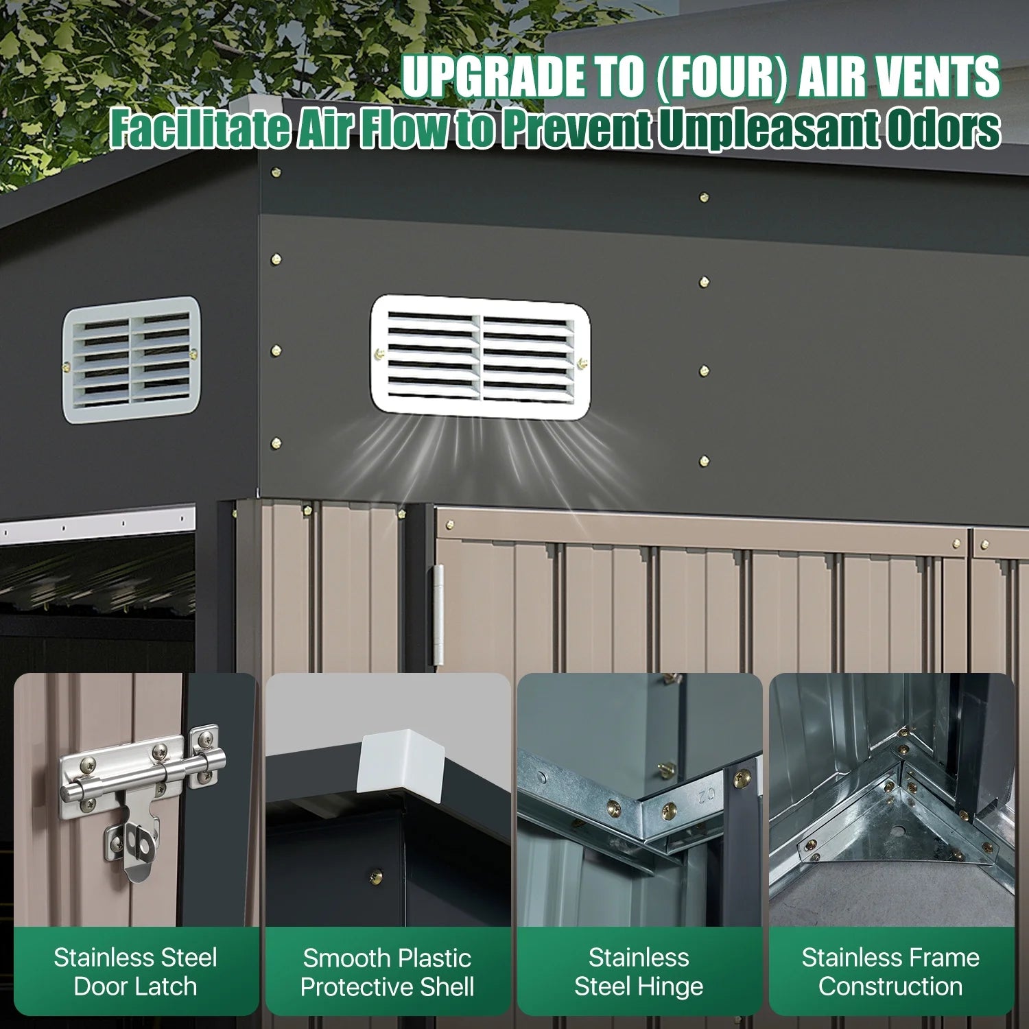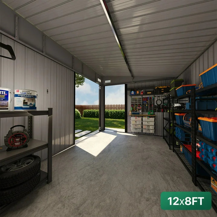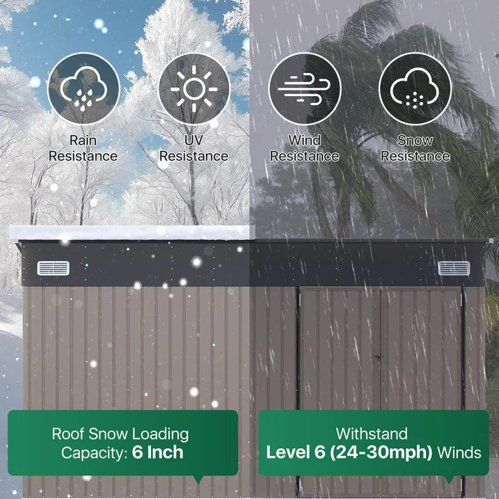- 💎 Durable & Stylish Build:Made of powder-coated steel, the shed resists rust and UV damage. It maintains a sleek look while standing up to tough weather.