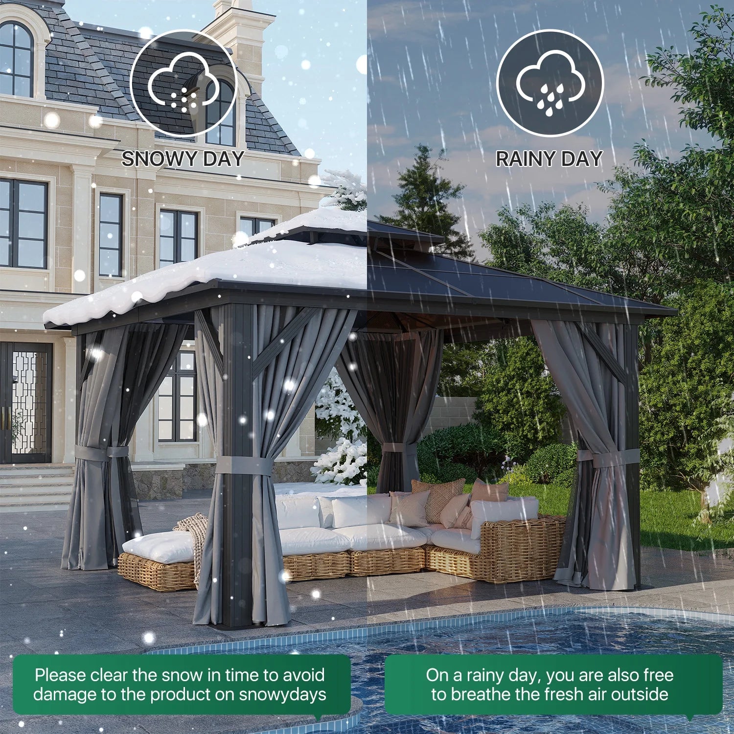 Clouddwell 12'x12' Hardtop Gazebo - Polycarbonate Double Roof with Netting & Curtains for Patio, Garden Sun Protection,Gray