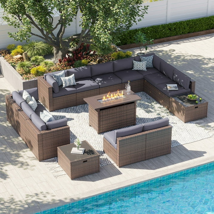 - Versatile and Comfortable: Our 15-piece patio set includes 8 armless sofas, 4 corner sofas,a firepit table and 2 coffee tables, making it perfect for various outdoor spaces like patios, porches, backyards, balconies, poolside areas, and gardens. The plush cushions, filled with high-quality sponge or cotton, ensure superior comfort for an exceptional lounging experience