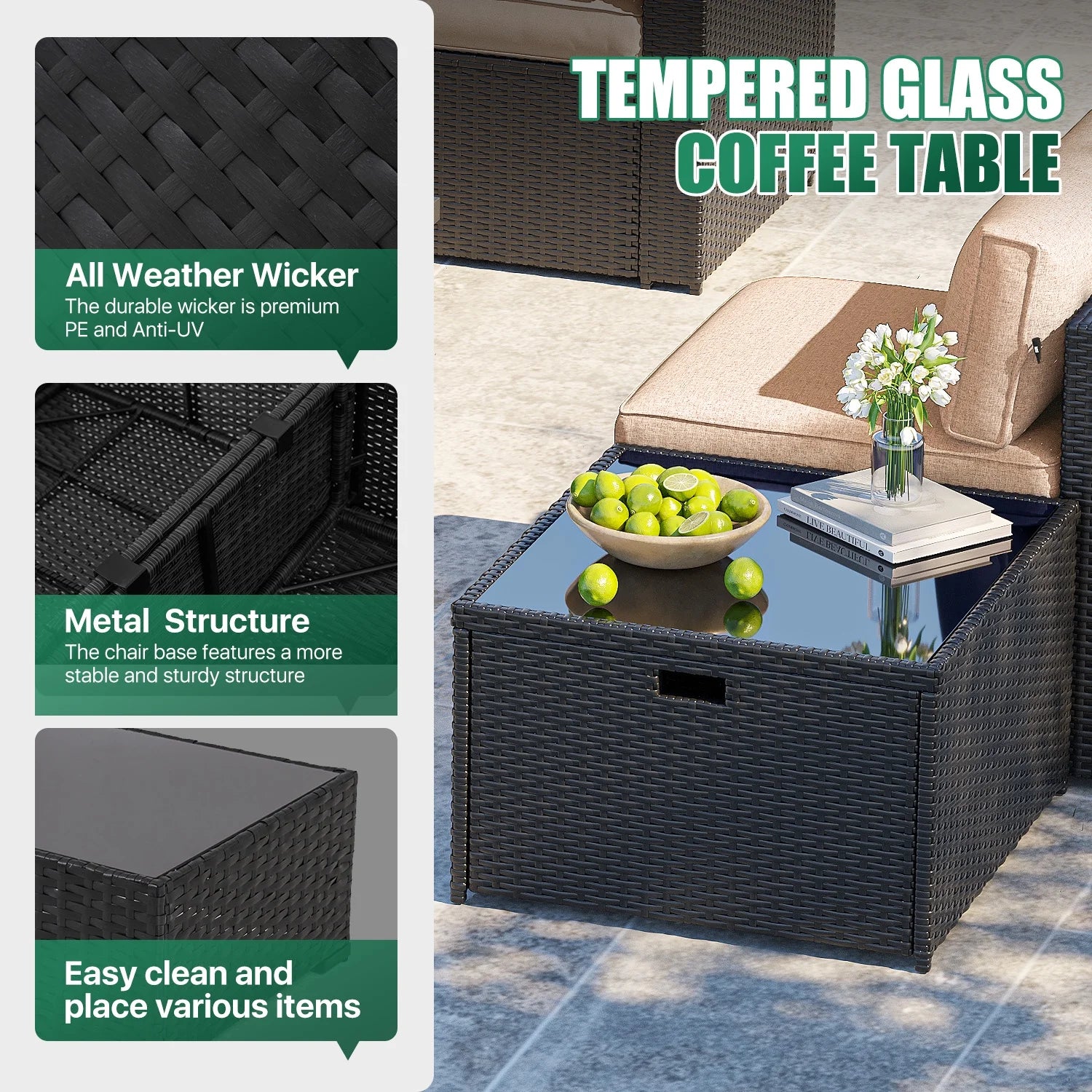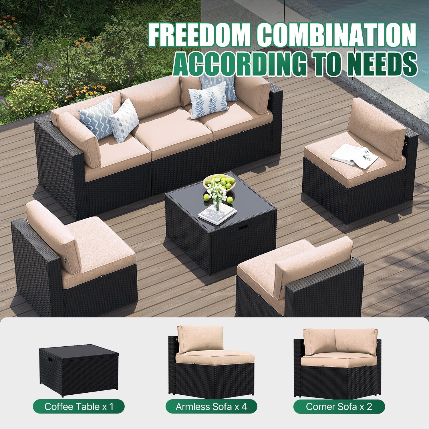 Clouddwell 7-Piece Patio Furniture Set on Sale, Black Rattan Wicker Outdoor Sectional Sofa Couch with Table Patio Conversation Set for Lawn& Backyard,Beige