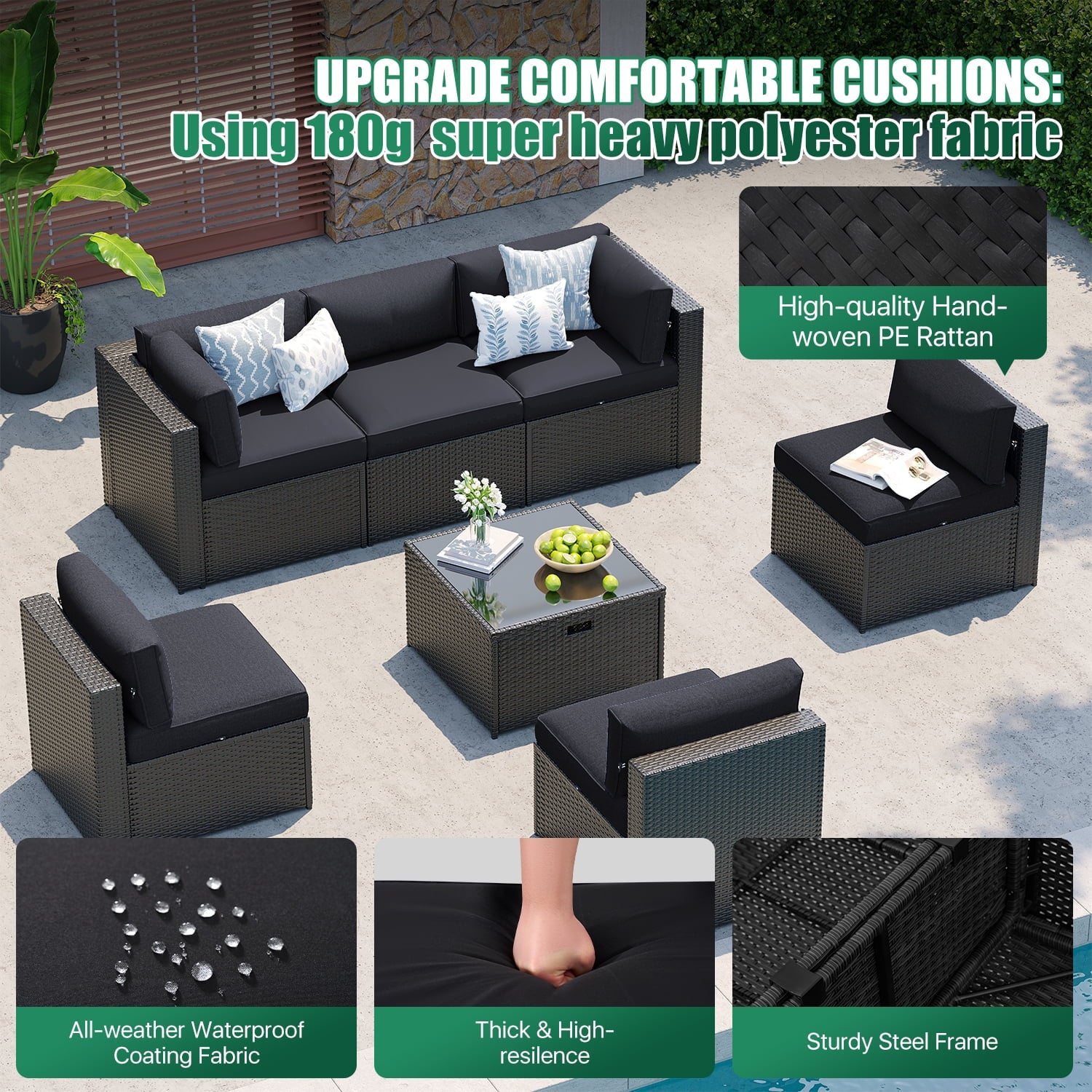 Clouddwell 7-Piece Patio Furniture Set on Sale, Black Rattan Wicker Outdoor Sectional Sofa Couch with Table Patio Conversation Set for Lawn& Backyard,Black