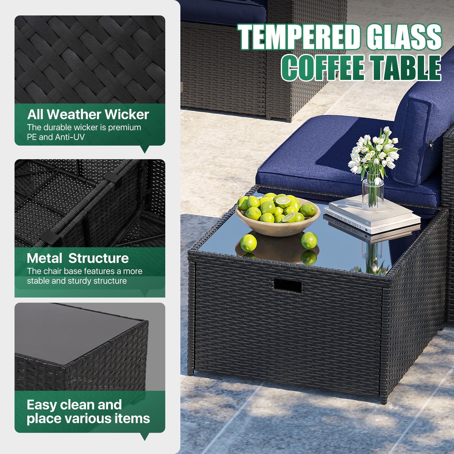 Clouddwell 7-Piece Patio Furniture Set on Sale, Black Rattan Wicker Outdoor Sectional Sofa Couch with Table Patio Conversation Set for Lawn& Backyard,Blue
