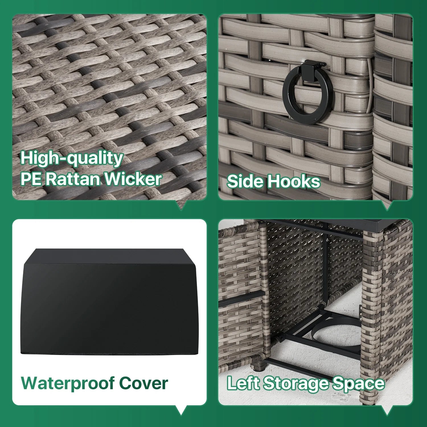 - Premium Quality: The set of furniture is crafted from powder-coated galvanized steel, offering exceptional durability and rust resistance. Besides, the robust design guarantees stability and safety, while the gray PE rattan material is built to endure diverse weather conditions like intense sunlight and humidity to fluctuating temperatures, which is Ideal for outdoor living