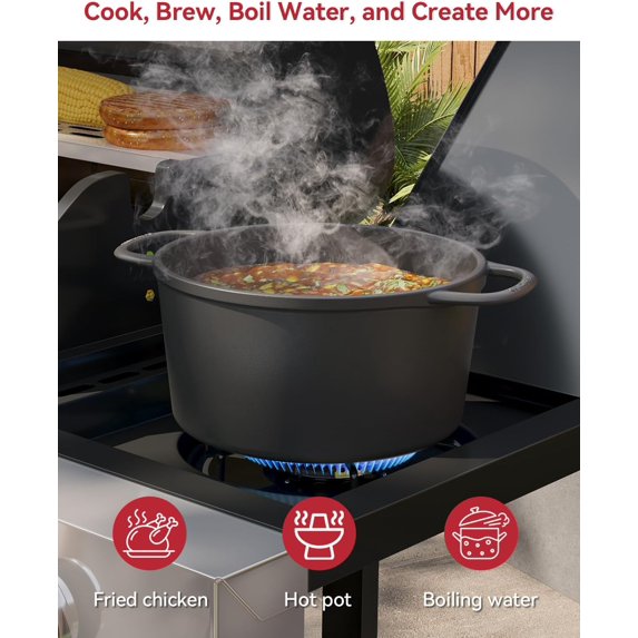 - With a generous 545 sq.in cooking area, features 400 sq.in porcelainenameled cast iron primary cooking area and 145 sq.in porcelainenameled warm rack secondary cooking area. The large cooking area also allows you to cook different types of food at the same time, making it ideal for hosting BBQ parties with friends and families