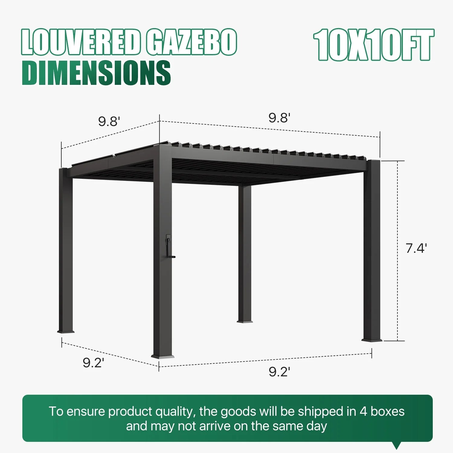 Clouddwell Louvered Pergola with Adjustable Top, 10'x10' Outdoor Metal Pergola, Gray, for Patio, Garden and Backyard
