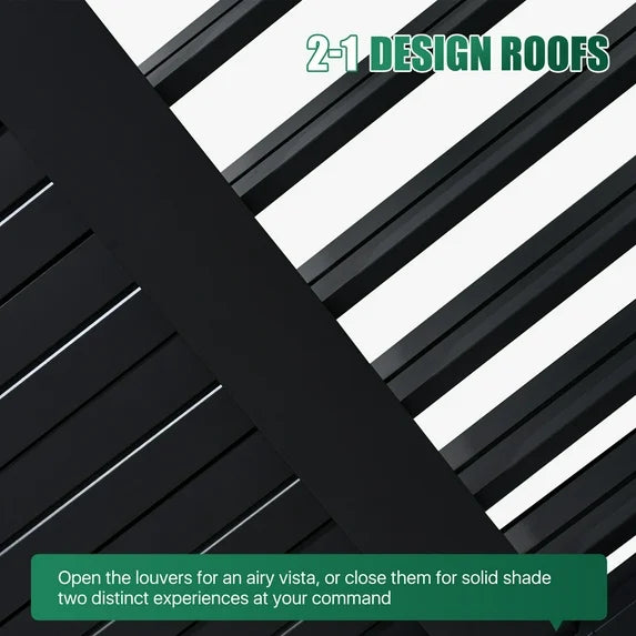 - 🌤 Adjustable Louvered Roof, Smart Shade Control:Effortlessly control sunlight and rain protection with the foldable crank handle. Smoothly rotate to open for breeze or close for full shelter, creating your perfect outdoor climate.