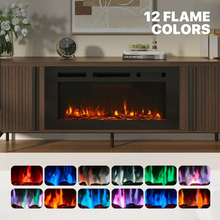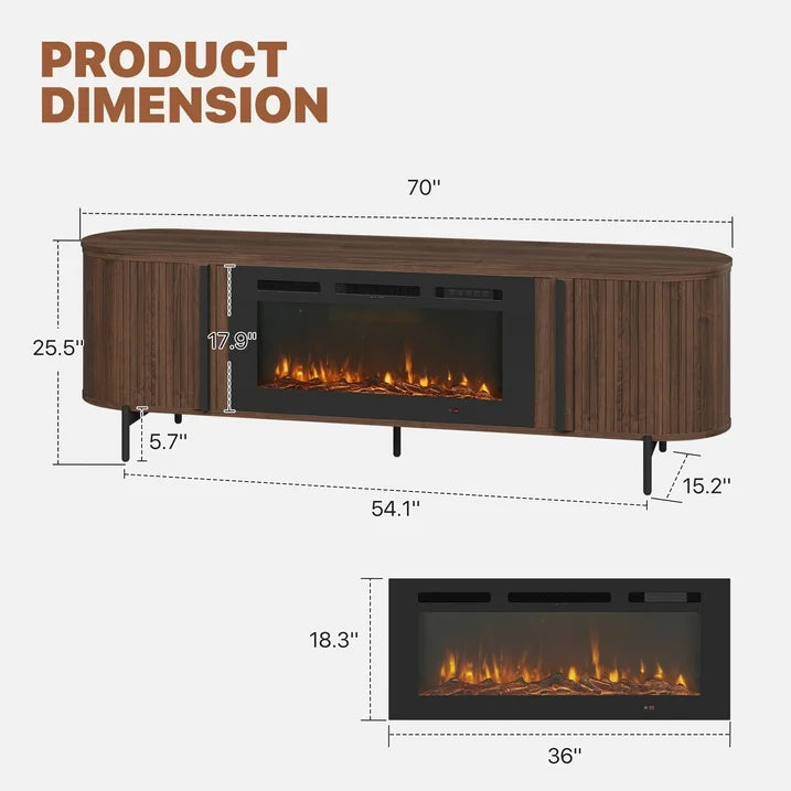 Sonegra 70" Fireplace TV Stand, Modern Entertainment Center for TVs Up to 80", TV Console Table for Living Room, Media Cabinet with Storage,70 Inch, Brown