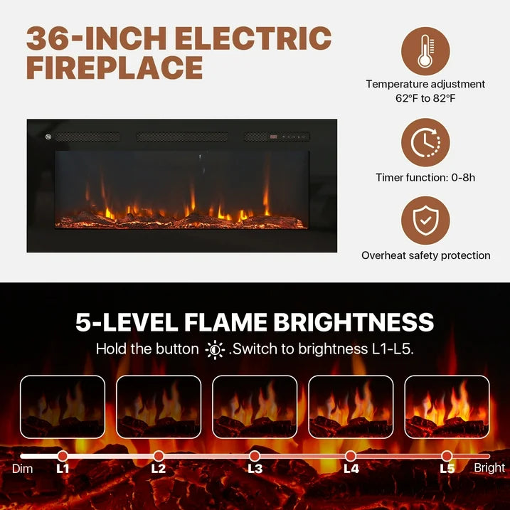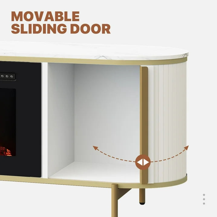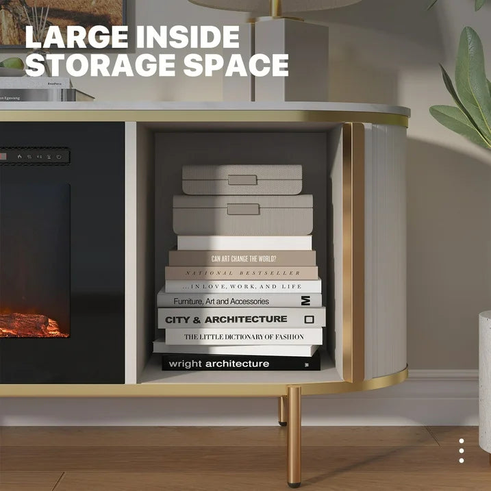 - Unique and Luxury Style: Featuring a distinctive wave-like fluted panel and curved profile, the fireplace TV stand allows it to blend effortlessly with various modern furniture styles. Its white faux marble top replicates authentic marble patterns, offering a luxurious aesthetic at a lighter weight