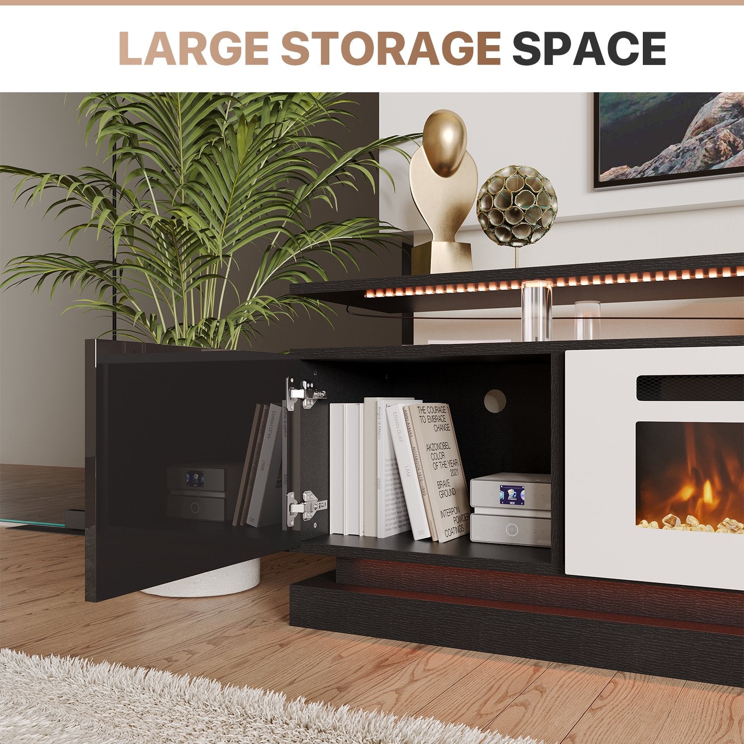 Sonegra Modern Fireplace TV Stand for TVs Up to 80" with Music Sync LED, 70" Entertainment Center with Electric Fireplace, TV Console with Storage Cabinets for Living Room, Black