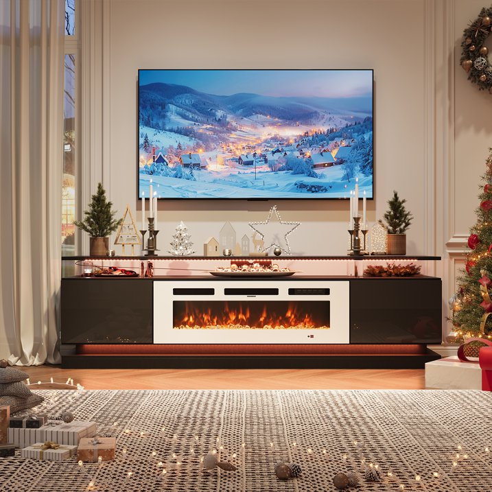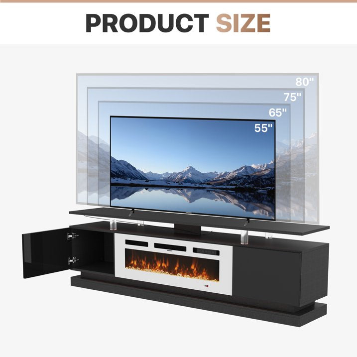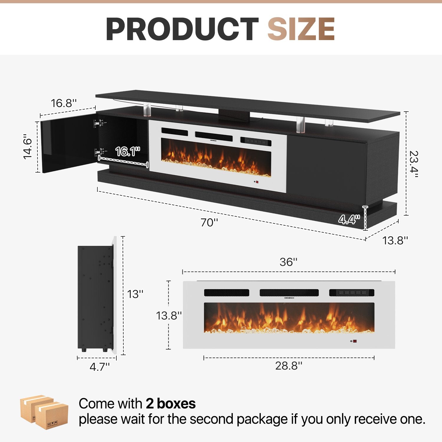 - With its high-gloss, mirror-like surface, this 70 inch TV stand introduces a sleek, contemporary elegance to your living space. Modern style electric fireplace TV cabinet suitable for all your decoration styles