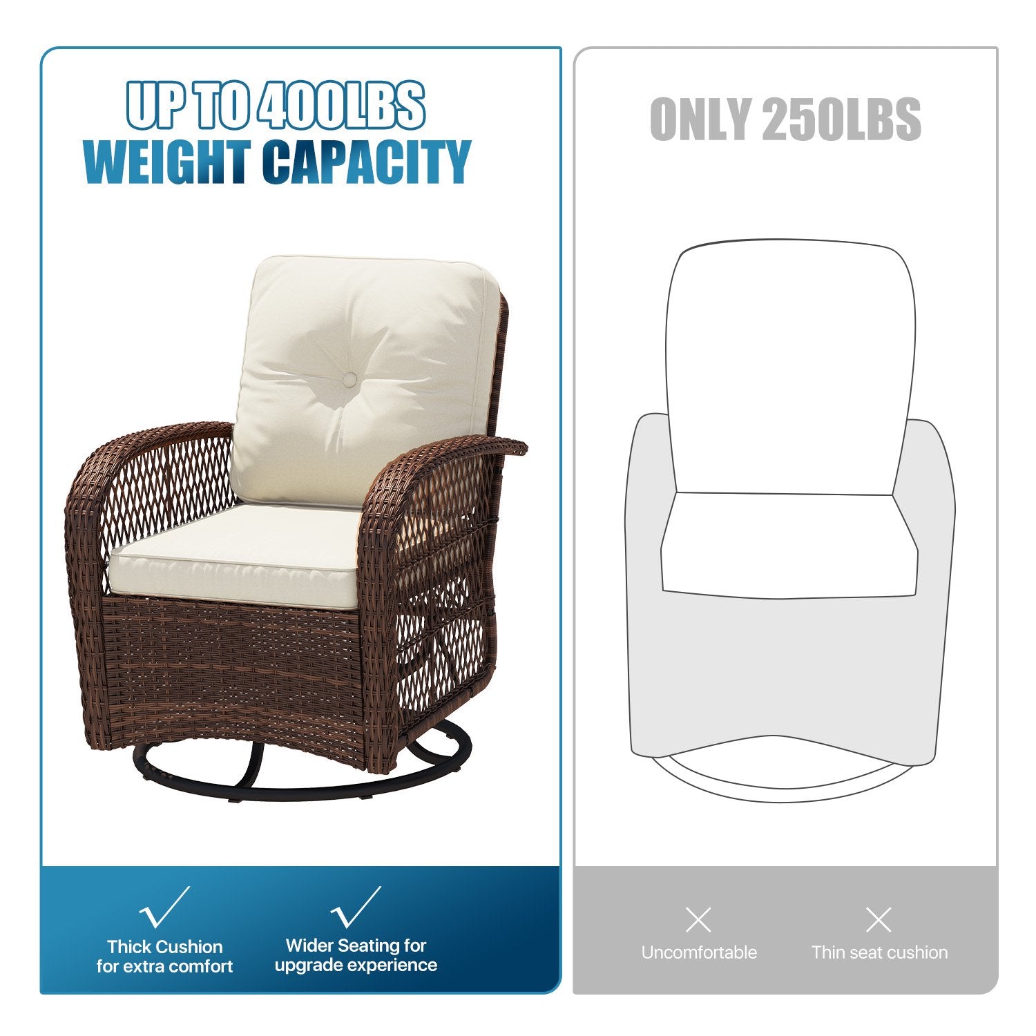 - 🔄 360° Swivel & Smooth Glide:Enjoy ultimate relaxation with rocking chairs that smoothly swivel a full 360 degrees and glide back and forth on a sturdy round metal base.