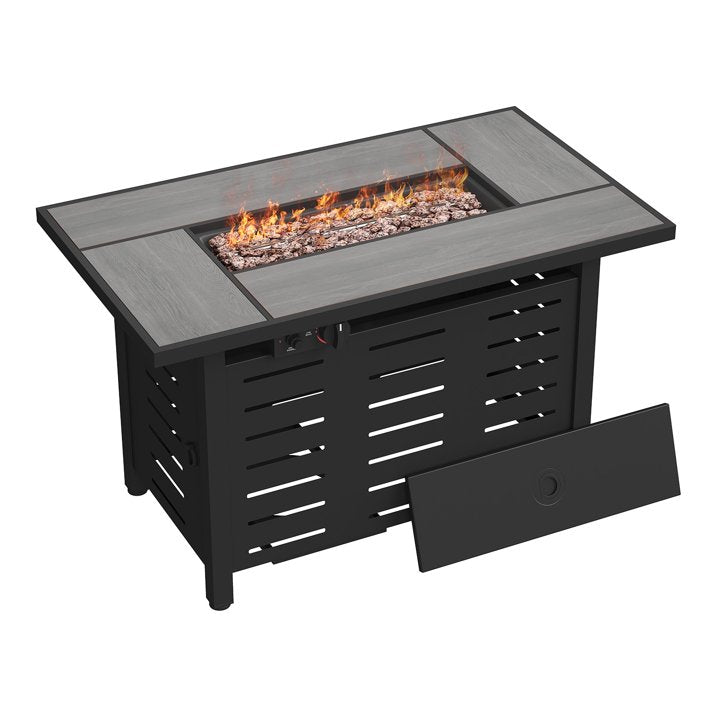 Sunmthink 42-Inch Smart Gas Fire Table – Redefining Outdoor Living Aesthetics Sunmthink masterfully blends technology with natural elements to create this outdoor fire table that combines functionality and aesthetic appeal. Equipped with a 60,000 BTU high-efficiency heating system, it instantly dispels the chill of late autumn, creating a warm and pleasant microclimate for gatherings of 10-12 people, ensuring your outdoor activities are no longer limited by seasonal changes.The tabletop is crafted from specially engineered stone, fired at high temperatures to achieve exceptional weather resistance. This unique manufacturing process not only effectively resists UV radiation but also provides scratch-resistant and durable properties. The innovative dual-purpose design, paired with a custom fireproof cover, allows effortless switching between a practical dining table and a cozy fire pit: by day, it serves as stylish patio furniture, and by night, it becomes a warm focal point that brings people together.Featuring advanced smokeless combustion technology, the fire table ensures efficient burning through precisely calculated gas mixing, eliminating the smoke issues commonly associated with traditional open flames. The specially designed pulse ignition system, powered by AAA batteries, offers an ultra-long lifespan of 35,000 ignitions and an ignition frequency of ≥6Hz. With just a gentle turn of the control knob, you can instantly enjoy the warmth of a clean, consistent flame.From family dinners to friendly gatherings, from romantic evenings to festive celebrations, this fire table—integrating innovative technology and user-friendly design—is the ideal choice to elevate your outdoor living experience, making every moment together a cherished memory.