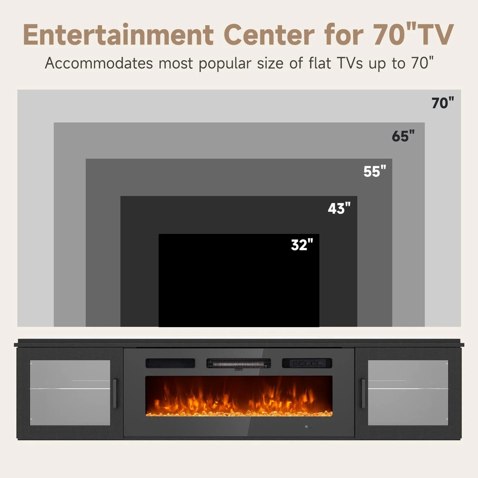 - High Gloss Finish: With a high-gloss finish and glass cabinet doors for elegance and easy cleaning, this modern floating fireplace TV stand offers more versatile styling that can effortlessly match any room's decor