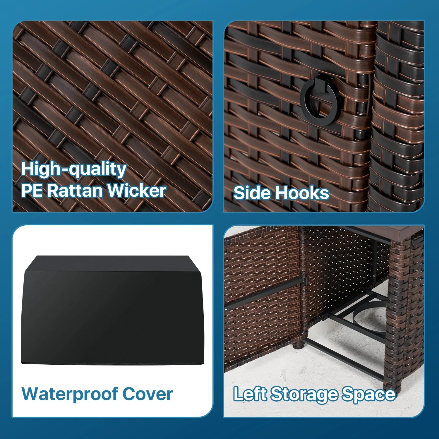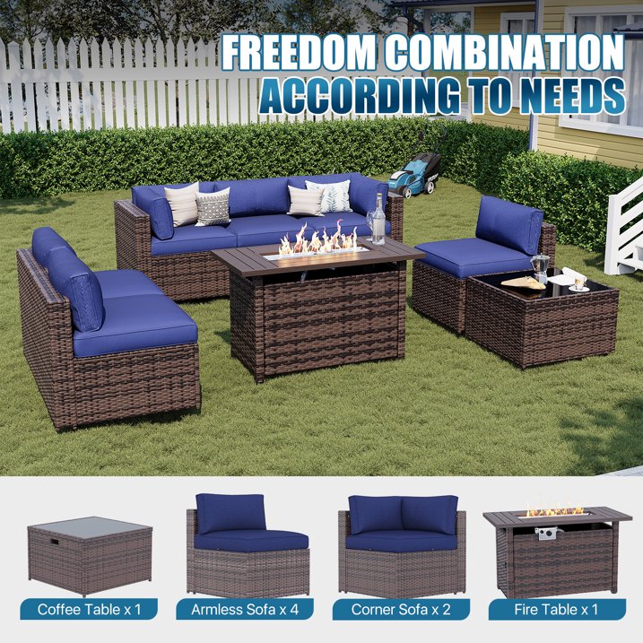 Sunmthink Patio Furniture Sets, 8-Piece Outdoor Patio Furniture with 44'' Propane Gas Firepit Table, Wicker Outdoor Conversation Set and Waterproof Cover for Backyard, Poolside, Garden